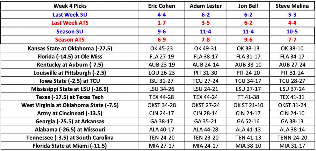 What’s not worth a thought is my 1-7 ATS performance last week including picking against that same Miami squad I’m touting above. The other three ‘experts’ are ahead of me across the board so time to bounce back this week with a huge 13 game slate including the 2020 debut of the SEC…