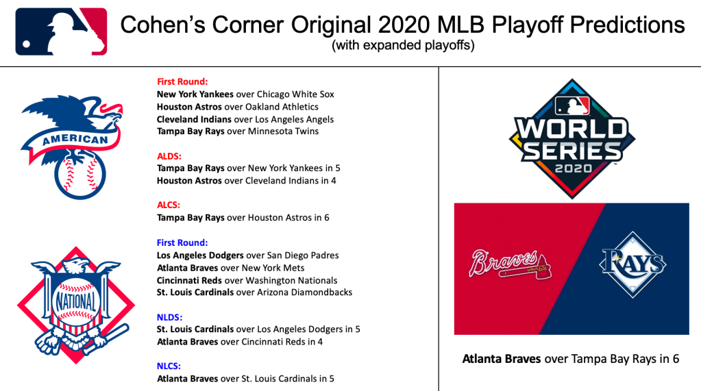 Sticking with my original World Series prediction but with a different champion. Enjoy what should be as wild and crazy a postseason as baseball has ever known!