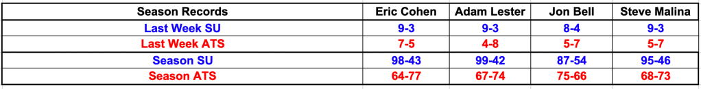 Speaking of the ‘experts’, congrats to Adam for beating me by a game in our regular season picks while JB dominated the ATS picks despite a lackluster SU record. Well done to those two!